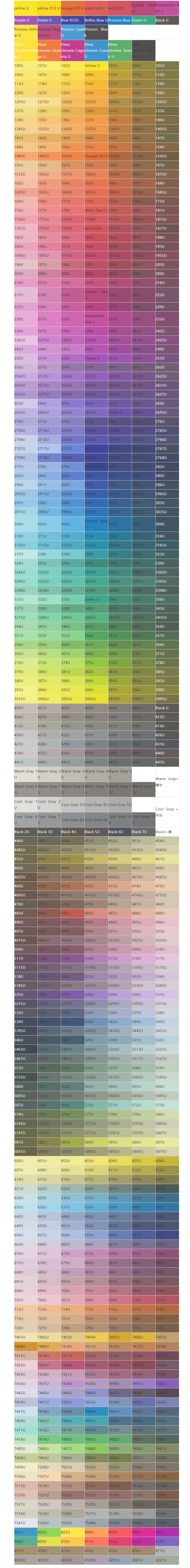 U卡是啞光的顏色的色卡
